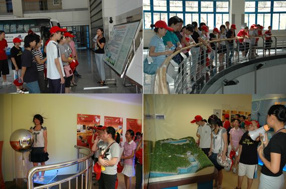 上午,同学们来到溧阳,参观江苏沙河抽水蓄能电站,详细了解电站的用途、组成部分、平立面布置、运行原理等。大家饶有兴趣地观看了电站机组运行情况和山顶上的蓄水水库。在电站的科普园地,有关人员讲授了水利知识,同学们观看了电站模型、闪点发生器、实地体验了静电的存在及原理,了解了环保发电方式等。随后,大家来到天目湖山水园,参观天目湖海洋世界,乘船游览了天目湖美丽的水利风景。在农家乐园,同学们还亲自体验了推磨、踩水车的乐趣。