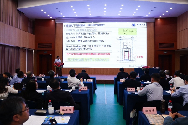 本次黄文熙讲座主讲人为上海大学孙德安教授。陆军工程大学王明洋院士应邀作大会特邀报告,南京大学唐朝生教授、中科院武汉研究所叶剑红研究员、北京交通大学蔡国庆教授、中南大学张升教授、南京水科院魏匡民高工等应邀作大会学术报告。